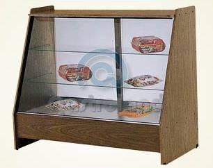 | Mostrador Panaderïa Frente Inclinado |  | De melamina color roble. Frente, estantes y puertas corredizas de vidrio. |